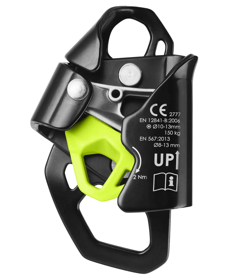 Versatile hand and chest ascender for efficient and fatigue-free climbing on ropes. The ergonomic design is suitable for both left and right-handed use. Thanks to the modular design, the fastening plate can be switched to the CHEST CRUISER plate, for example, with just one screw, allowing integration into different harness systems. A small eyelet at the top enables a cord to be threaded through so the ascender can be attached to the rope during various different uses. The large eyelet can hold up to three carabiners and is bent backwards so as to be constantly accessible and not to get in the way of the rope. Approved for up to 150 kg.