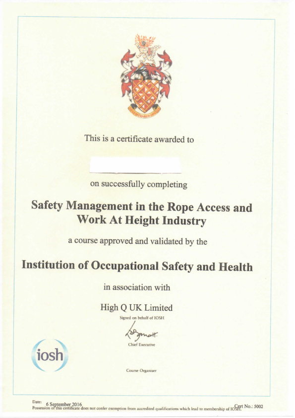 IOSH - Safety Management in the Rope Access and Work at Height Industry 19th - 20th September 2022